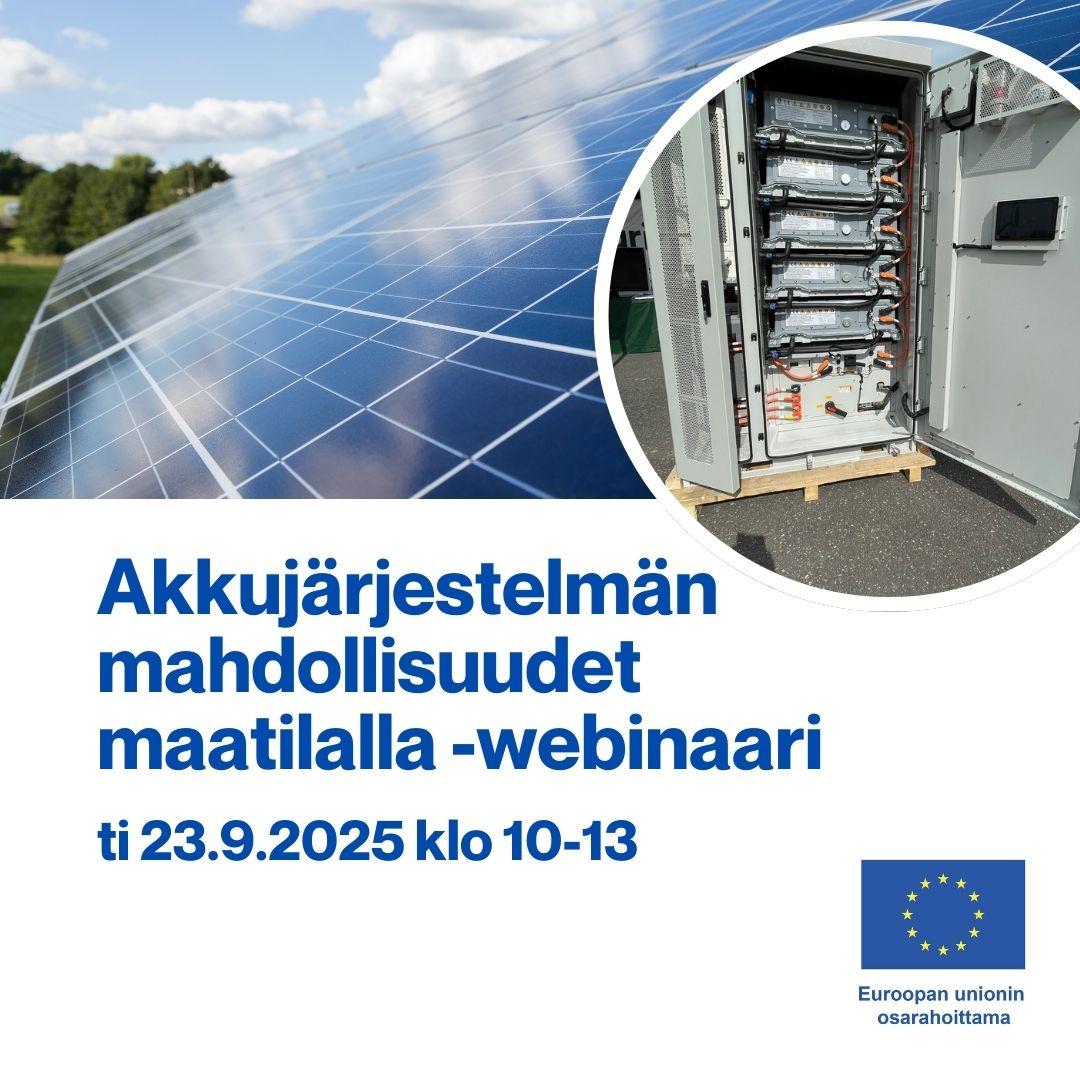 Akkujärjestelmän mahdollisuudet maatilalla -webinaari ti 23.9.2025 klo 10-13