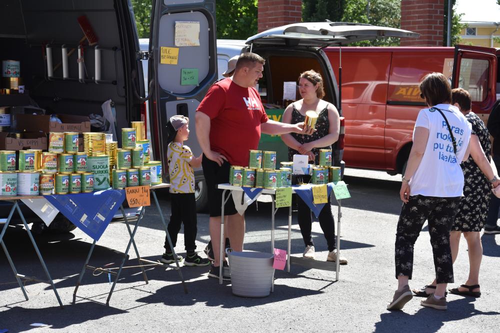 Kauppakeskuksen pihalla järjestettiin maalaismarkkinat, missä paikalliset pientuottajat myivät tuotteitaan. Tilaisuutta säestämässä oli kaksi nuorta haitaristia.