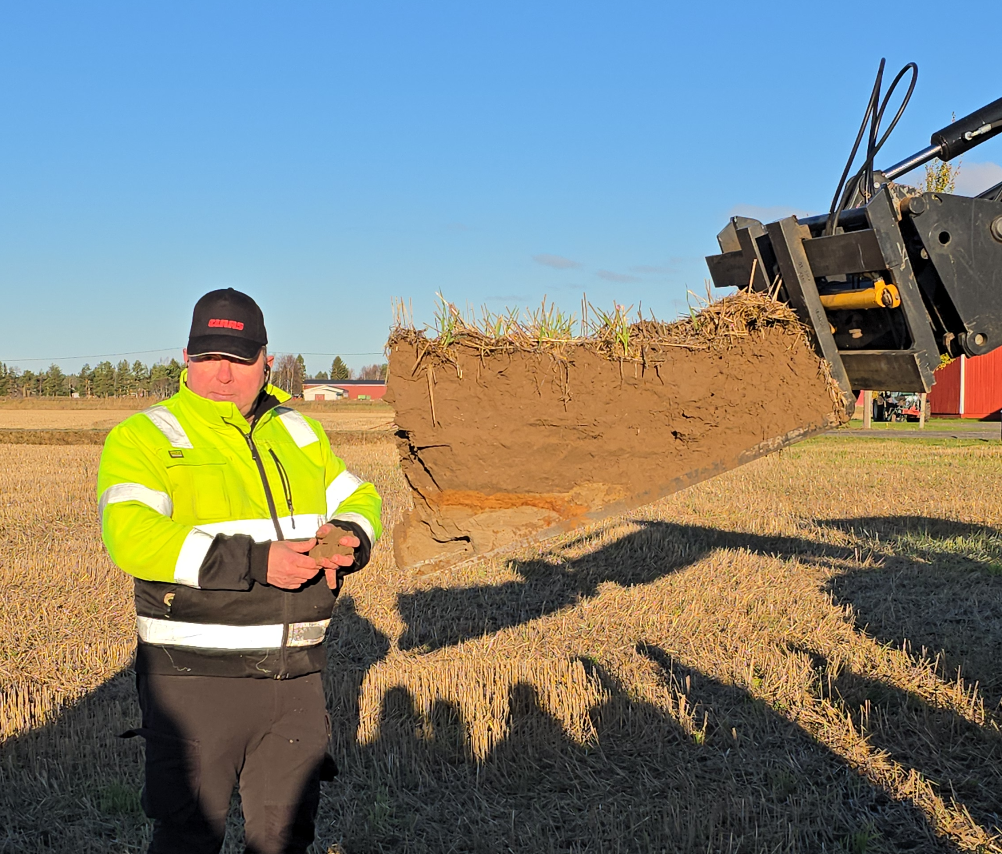 Päivän aikana nähtiin myös maakuoppatesti, Matinollin tyyliin - suottapa sitä lapiolla rehkimään, jonka avulla tarkasteltiin maan rakennetta ja kasvukuntoa – videolla se näkyy kuvina pellolta.