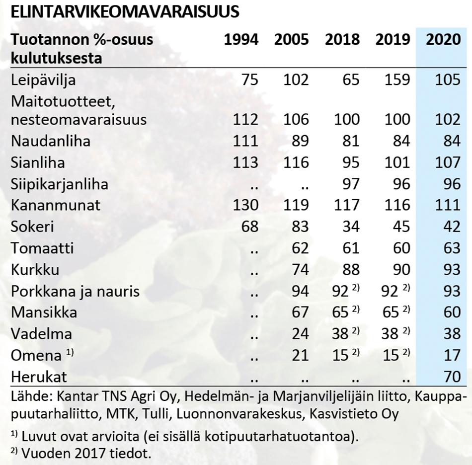 Oman maan ruoka on kriisiajan henkivakuutus. Suomalaisen elintarvikehuollon vahvuuksia ovat korkea omavaraisuusaste sekä toimiva elintarvikeketju. Valtioneuvosto on linjannut, että toimiva elintarvikehuolto on yhteiskuntamme kriittistä tuotantoa, joka turvataan kaikissa oloissa.