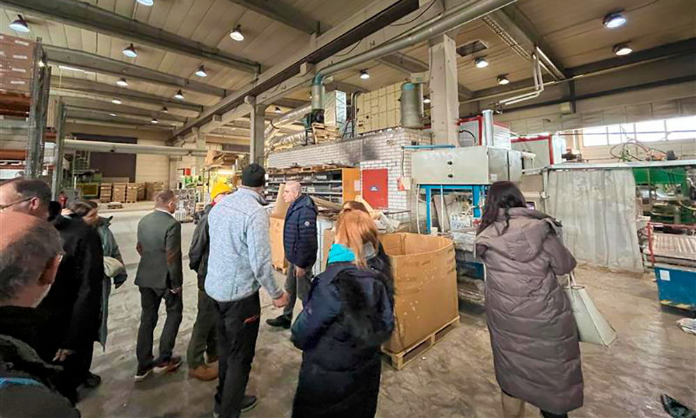 Opintoretkillä nähtiin käytännössä, miten metsätalouden kierrätetyistä uusiutuvista materiaaleista voidaan jalostaa korkeamman arvon tuotteita. Ecopulp valmistaa puukuidusta pakkausmateriaaleja.