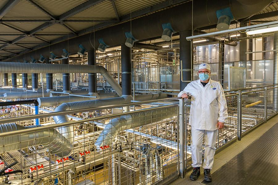 Tarja Hietanen työskentelee tuotepakkaajana ja työntekijöiden pääluottamusmiehenä Valion Jyväskylän meijerissä, jossa valmistettua kotimaista maitoa on tarjolla myös kuntakeittiöissä.