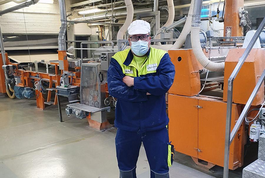 Kim Palola työskentelee huoltomiehenä ja työntekijöiden pääluottamusmiehenä Lantmännen Cerealian Kotkan tehtaalla, jossa valmistettua kotimaista näkkileipää on tarjolla myös kuntakeittiöissä.