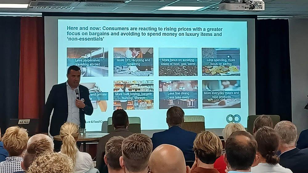Peter Vesterbeck Tanskann Landbrug of Fødevaretista kertoi markkina- ja kuluttajatrendeistä. Tilanne on nyt ruoka-alalla haastava, koska alan tuotantokustannusten lisäksi myös elinkustannukset ovat nousseet. Merkittävä osa kuluttajista on huolissaan tilanteesta ja reagoi tilanteeseen ostamalla halvempia tuotteita ja ostamalla vähemmän kuin aiemmin.