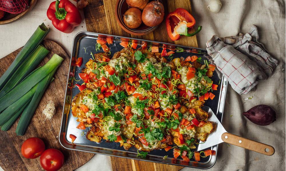 Peruna-nachopelti smetana-purjotäytteellä yhdistää rapeaksi paahdetut perunat ja täyteläisen smetana-purjoseoksen. Helppo valmistaa ja täynnä makua – täydellinen naposteltava tai herkullinen lisuke!
