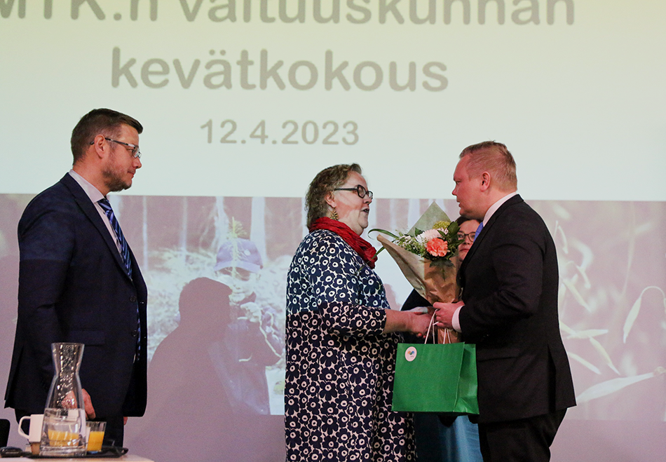 Valtuuskunnan puheenjohtaja Eerikki Viljanen kiitti ministeriä yhteistyöstä ja muistutti, että MTK:lla on maan paras asiantuntemus maaseudun asioissa ja koko elämä maa- ja metsätaloudessa kiinni.