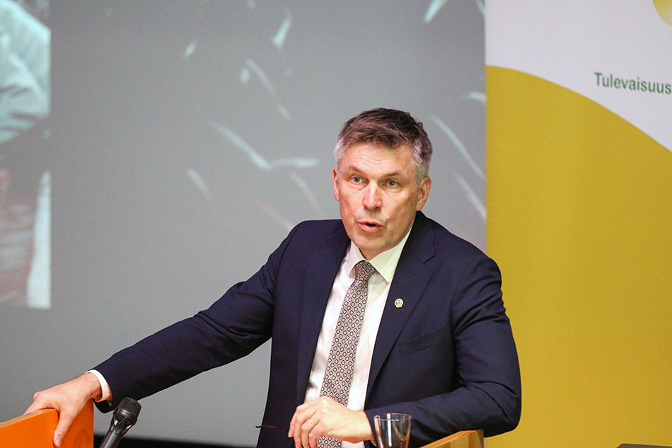 Suomalainen ruoka ja puu on keskeinen osa huoltovarmuutta. Hän kiitti MTK:ta ja sitä tärkeää työtä, jota viljelijät ja metsänomistajat tekevät.