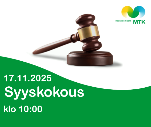 MTK-Polvijärvi syyskokous 24.11. klo 11 alkaen Polvijärven teknisen toimiston kokoustila