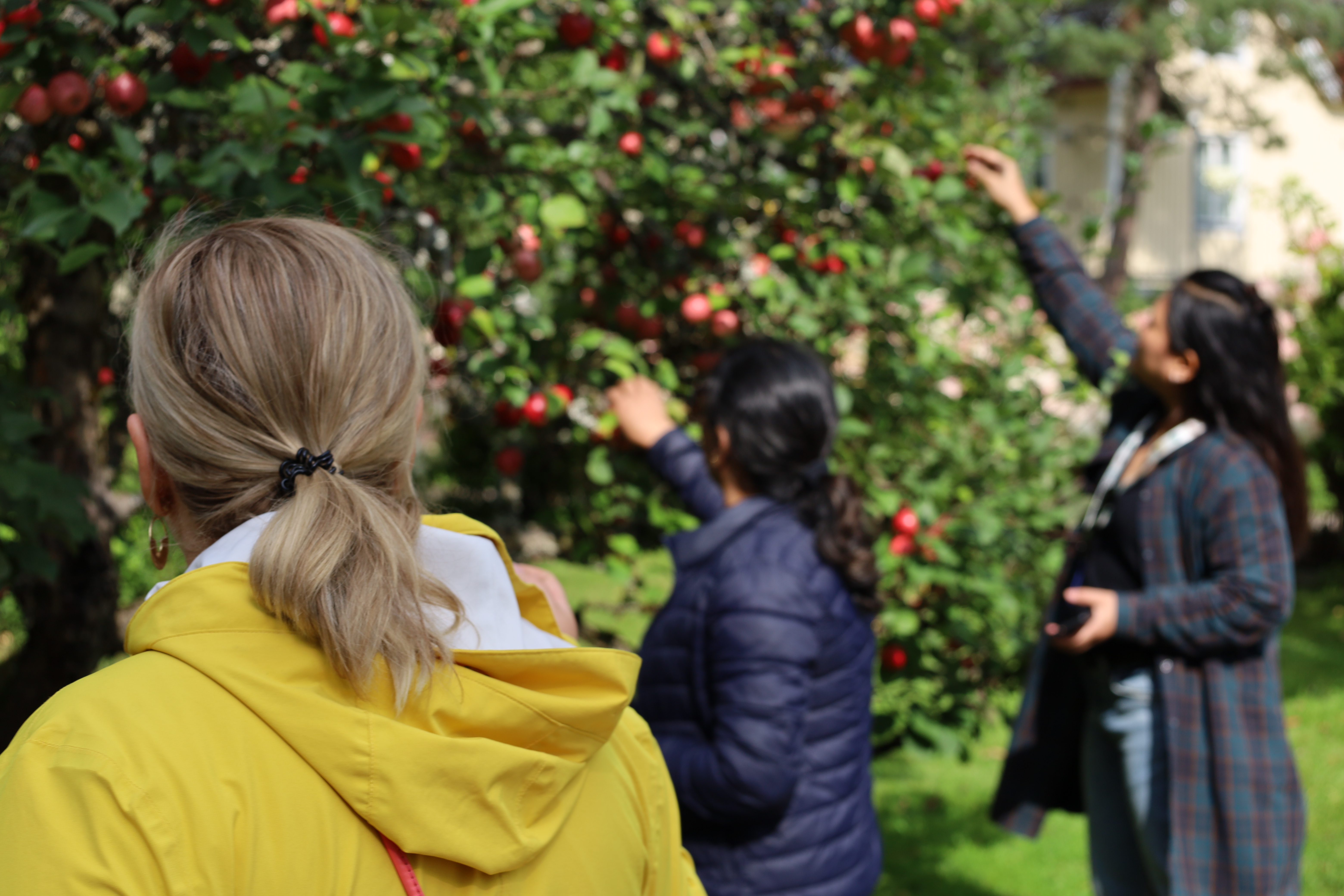 Helsinkiin palattiin iloisina, omenoilla herkutellen ja kantarelleja kassit pullollaan. Näistä päästään myös kokkaamaan, kun kurssi jatkuu kokkauspäivillä Haaga-Heliassa. Keskustelu kävi koko päivän kiivaana ja vieraiden innostuksen suomalaiseen ruokaan aisti. Yksi kehitysehdotuskin nousi kommenttien joukosta esiin – voisiko suomalaisille tuotteille lanseerata kansainvälisen markkinapaikan, jotta niitä voisi tilata esiteltäviksi ja maistatettaviksi lähetystöissä ja muuallakin?